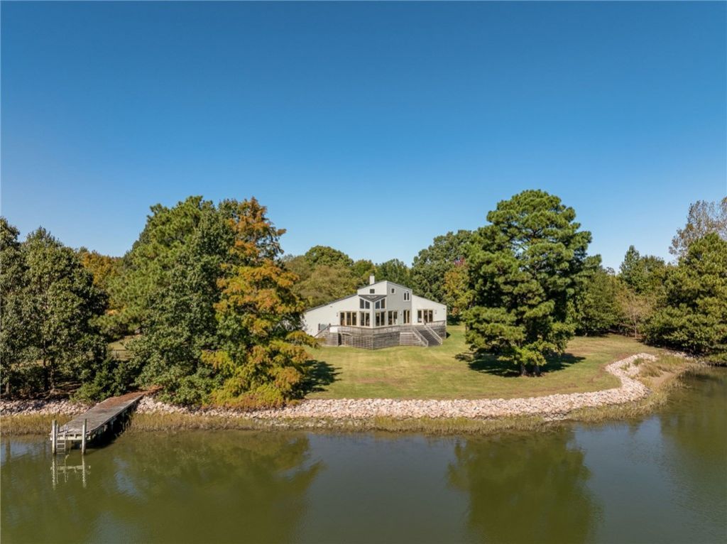 An amazing opportunity and first offering of this architectural gem situated on nearly 2 acres with stunning views of the Chesapeake Bay. New Roof 2021! A fantastic open floorplan featuring a stunning foyer with a statement staircase, floor to ceiling water views in the living room and amazing storage in the contemporary style kitchen. Wake up to the serene waterfront in the main level primary bedroom with vaulted ceilings, a massive closet and ensuite bath with dual sinks. Another bedroom, a well-sized office, a powder room and an additional utility room with main floor laundry complete the first floor. Upstairs, two additional bedrooms share another full bath. Additional storage and cedar closet above the huge three car garage! Outside, the extensive deck and private pier capture all the possibilities this amazing waterfront home can offer!