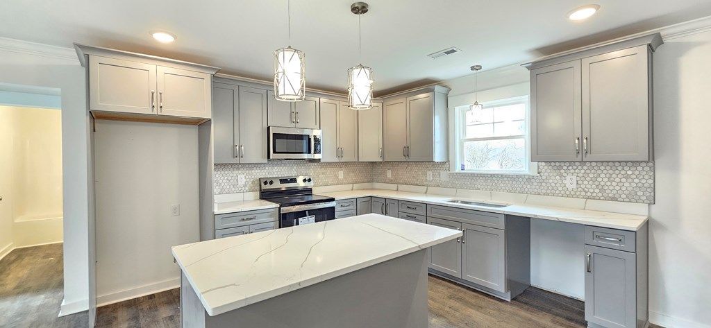 Thoughtfully crafted home with LVP flooring through all common areas, spacious kitchen with center island, quartz counter tops, stainless appliance package, white cabinets with soft close drawers/doors, pantry and spacious utility room. Generous sized master suite with walk-in closet with dual vanity and shower in master bath. Masonry front porch and a covered rear deck (14x12) with composite decking.