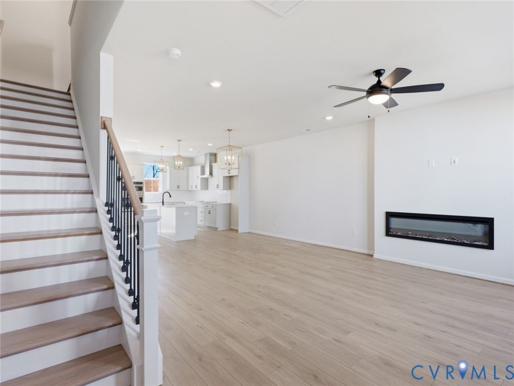 *MOVE IN READY*Introducing The Corabell B, a three-bedroom, two-full-bath and two-half-bath townhome with 1,777 square feet of thoughtfully designed space in the sought-after Sycamore Place community. This beautifully crafted home features a two-car garage, a flexible lower-level office, and a gourmet kitchen with upscale finishes that blend form and function. The open-concept main living area holds a spacious great room and a modern electric fireplace. The gourmet kitchen includes GE stainless appliances, quartz countertops in Ethereal Haze, flat-panel Frost cabinetry, black hardware, and a herringbone tile backsplash. A butler's pantry nook offers added kitchen storage and serving ease. A boxed ceiling in the primary bedroom and ceiling fans in the primary and great room elevate the spaces. Stylish wood stairs with metal spindles and two-panel interior doors add an elegant touch. A full-size washer and dryer are included. Upstairs, the large primary suite offers a relaxing retreat with a spa-like bath featuring white quartz countertops, Aria White tile, and sleek black accents. Two additional bedrooms share a full hall bath with matching finishes. The exterior impresses with hardie-plank siding, a polished mahogany front door, Millstone brick, and a slate-colored roof, giving the home timeless curb appeal. *Photos are of the actual home*